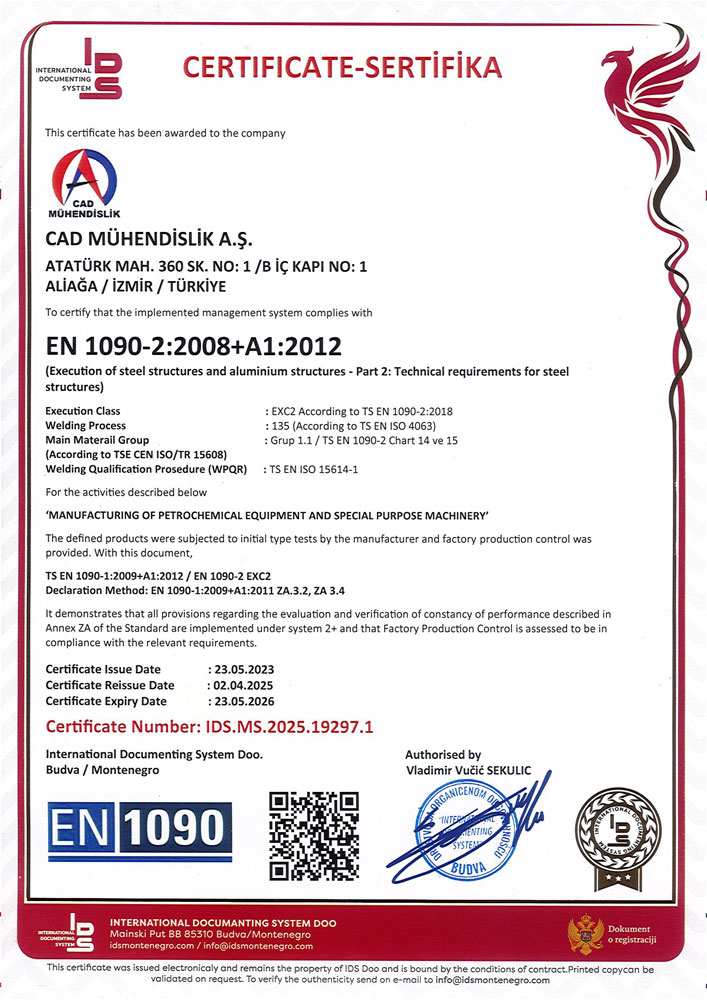 CAD Mühendislik A.Ş. has been active since 2003 in the fields of machinery design, production, and plant installation for the iron-steel, petrochemical, and heavy industry sectors. Since our establishment, we have continuously strengthened our leading position in the sector through our ever-evolving structure and innovative approach.